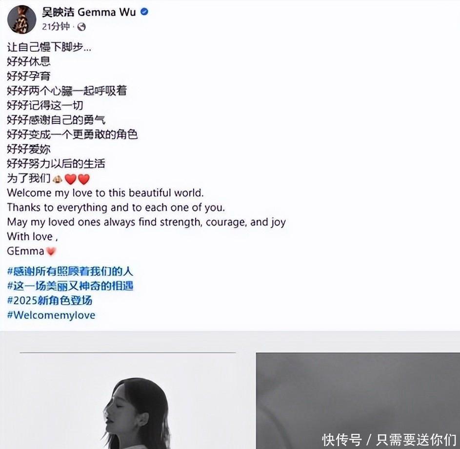 说到吴映洁当妈这件事,还得把时间拨回到2025年1月——她毫无预兆地在社交媒体上突然官宣自己已经当了妈妈,瞬间引爆话题。不仅晒出了宝宝的可爱小照,还大方公开了自己的孕期写真,从孕肚到新生儿,一连串的“证据”让人措手不及,不少粉丝直呼:“完全没料到!”